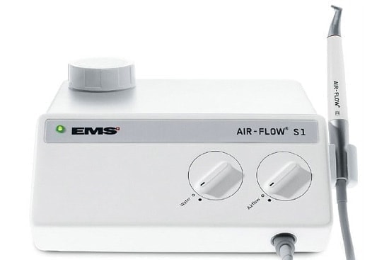 これは微細な粒子をウォータースプレーで吹きつけ、歯の表面に付着したしつこい汚れ(歯垢・プラーク)やタバコのヤニ、茶渋などの汚れを除去します。使用後は汚れの再付着を防ぐためPMTCを行い、歯の表面をツルツルにしていきます。