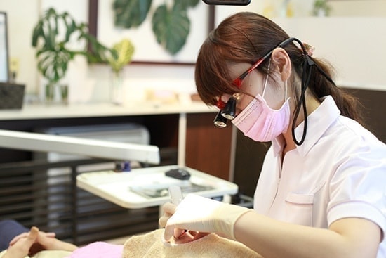 小川歯科医院では必要に応じて拡大鏡を用いた精密治療を行っています。これまで人間の肉眼では限界だった部分を、拡大鏡により簡単確実に治療ができるようになり、治療精度は何倍もアップします。治療精度は虫歯治療や歯周病治療だけでなく歯科治療全般において大切な要素です。これが将来のための予防になり、歯を残していく為の歯科治療として必要不可欠となっています。